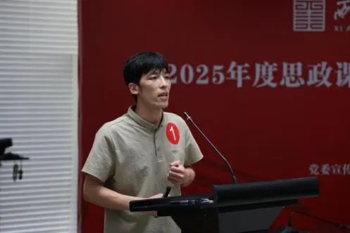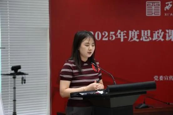 党委副书记邱必震讲话 邱必震表示,自2018年陕西省委教育工委启动思政课教师“大练兵”活动以来,学校高度重视,通过集体备课、专家指导等方式持续提升教师教学能力,并在省级展示中取得优异成绩。他强调,一是要坚守育人初心,擦亮思政教育的西美底色,传承红色基因,弘扬“弘美厚德,借古开今”的校训精神,推动党的创新理论与艺术创作深度融合,引导青年学生成为马克思主义的坚定信仰者和传播者。二是要深化“思政+艺术”的融合,打造思政金课,以艺术语言诠释真理,用革命题材活化课堂,推动思政教育入脑、入心和入魂。三是要牢记课比天大的理念,建设大思政队伍。思政课教师要认真学习领会习近平文化思想,不断提升自身的理论素养和艺术修养,成为懂艺术、通理论、擅育人的优秀思政课教师。比赛现场 共有9名教师参加展示活动,各位教师立足西美特色,针对艺术类学生的思维特点和学习需求,巧妙选取学生关切的现实问题作为切入点,将生动的典型案例与时政热点有机融合,并灵活运用数字化教学手段打造沉浸式教学内容。