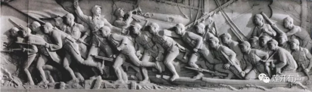 人民英雄纪念碑是1949年9月30日由中国人民政治协商会议第一次全体会议决定,为纪念百年来反帝反封建而献身的烈士和取得的丰功伟绩,在天安门广场建造大型纪念碑。在纪念碑四周的浮雕创作上,集中了共和国雕塑界的几乎全部精英,曾竹韶作《虎门销烟》、滑田友作《五四运动》、王丙召作《金田起义》、傅天仇作《武昌起义》、王临乙作《五卅运动》、萧传玖作《八一南昌起义》、张松鹤作《抗战游击队》。《胜利渡长江》由刘开渠创作。
