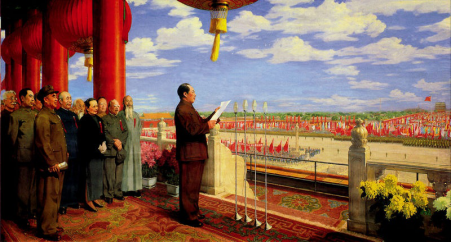 油画《开国大典》是画家董希文于1953年创作完成的,作品尺寸为405cm×230cm,现在收藏于中国国家博物馆。