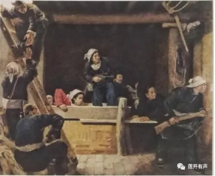 《地道战》广为人们所熟悉,并被选入小学课本的革命历史画。这幅油画作品生动地再现当年中国人民打击日本侵略者的场景,虽然它描绘的不是千军万马的大规模战役,只是冀中平原上老百姓、游击队的巧妙作战,却使人难以忘却,激发中国人的爱国主义情绪,增强我们民族的自豪感。而通过图像化的革命历史颂扬人们心中的英雄人物和英雄事迹,图绘革命历史也就成了那个年代许多画家责无旁贷的任务,更是我们这一代人的榜样。