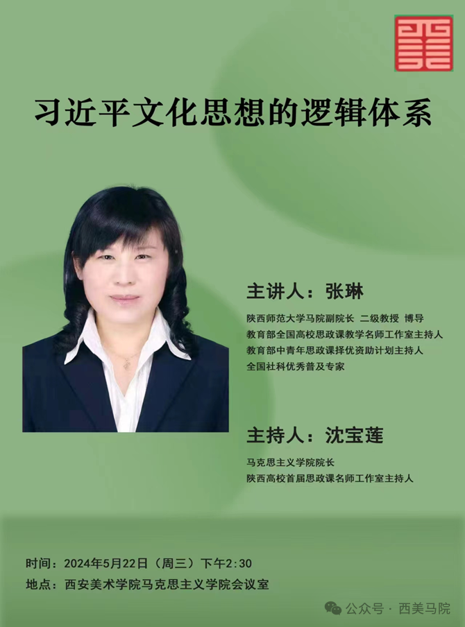 思想之旗引领新征程,理论之光照亮奋进路。为深学细照笃行习近平文化思想,把握好发展中国特色社会主义文化、建设社会主义文化强国的实践要求,进一步提振我院思政课教师乐教善教、潜心育人的信心与底气,学院结合习近平总书记5.11日对学校思政课建设作出重要指示,特别邀请陕西师范大学马克思主义学院副院长、博士生导师张琳教授莅临我院,为全体教师作《习近平文化思想的逻辑体系》专题讲座。