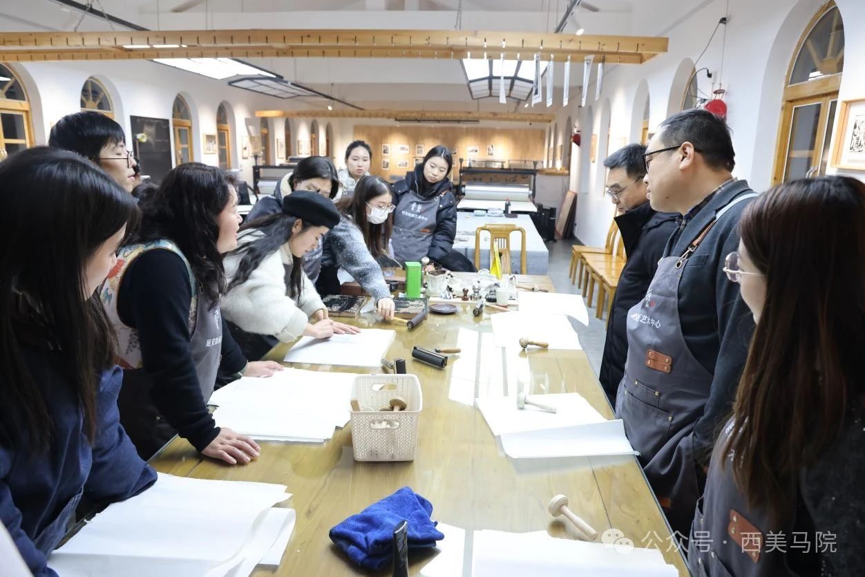 培训为期3天,以“赓续红色血脉,传承鲁艺精神”为主题,学员们参观了延安革命纪念馆、延安文艺纪念馆、延安新闻纪念馆,与延安大学党委宣传部、马克思主义学院、鲁迅艺术学院等部门负责同志就学科专业建设、教学改革、师资队伍培养进行了座谈交流。学员们追寻了宝塔山、鲁艺、杨家岭、枣园等革命旧址,深刻感受革命先烈的奋斗精神。学员们聆听了中国延安干部学院王涛教授“中共中央在延安十三年”、延安革命纪念馆刘妮馆长“木刻版画中的美育觉醒——从延安木刻到新中国美术”的专题讲座,深入学习了延安精神、鲁艺精神的历史内涵。学员们在延安美协版画艺委会郭丽娟副教授的指导下,亲身实践木刻版画,感悟延安木刻版画所承载的革命精神与艺术力量。