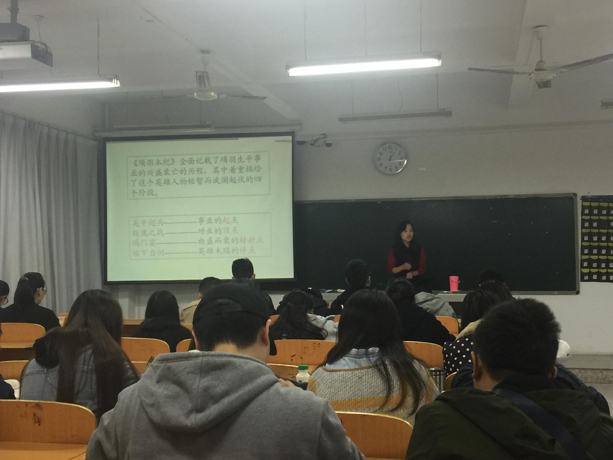 在此次观摩课中,张丽娥老师向我院2016级油画、书法和实验与艺术专业的学生讲授司马迁的《史记·项羽本纪》一章,在教学过程中,对作品的写作背景、作品人物、精彩篇章进行了全面的介绍和解读,最后就“项羽”这一核心人物进行了分析总结,就“项羽”性格特征表达了独到的见解。
