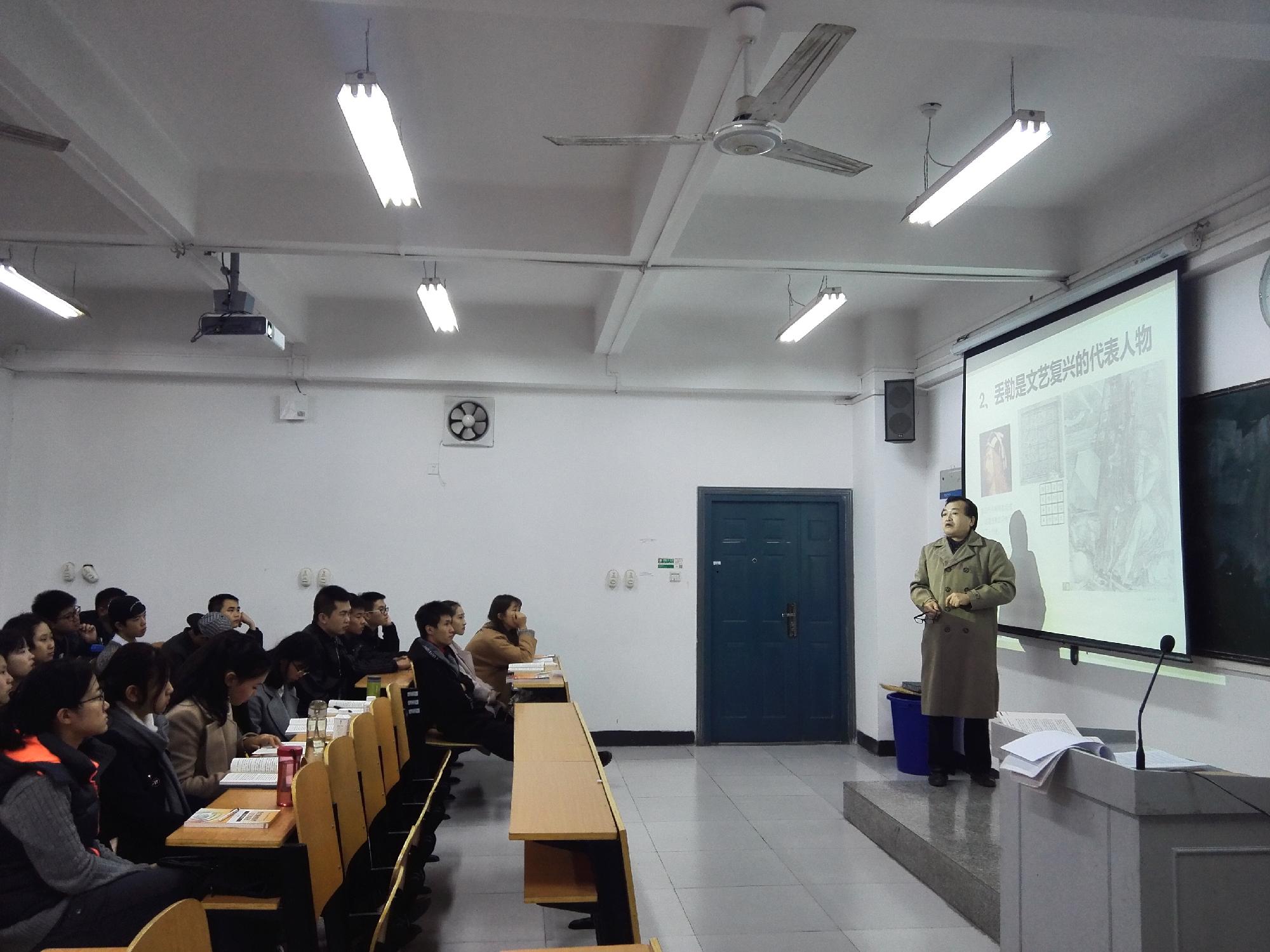 11月7日上午8点到9点半,基础部主任沈宝莲教授及文学教研室全体教师走进课堂,在3号教学楼321教室观摩了新进教师张丽娥老师的《古代文学》课。