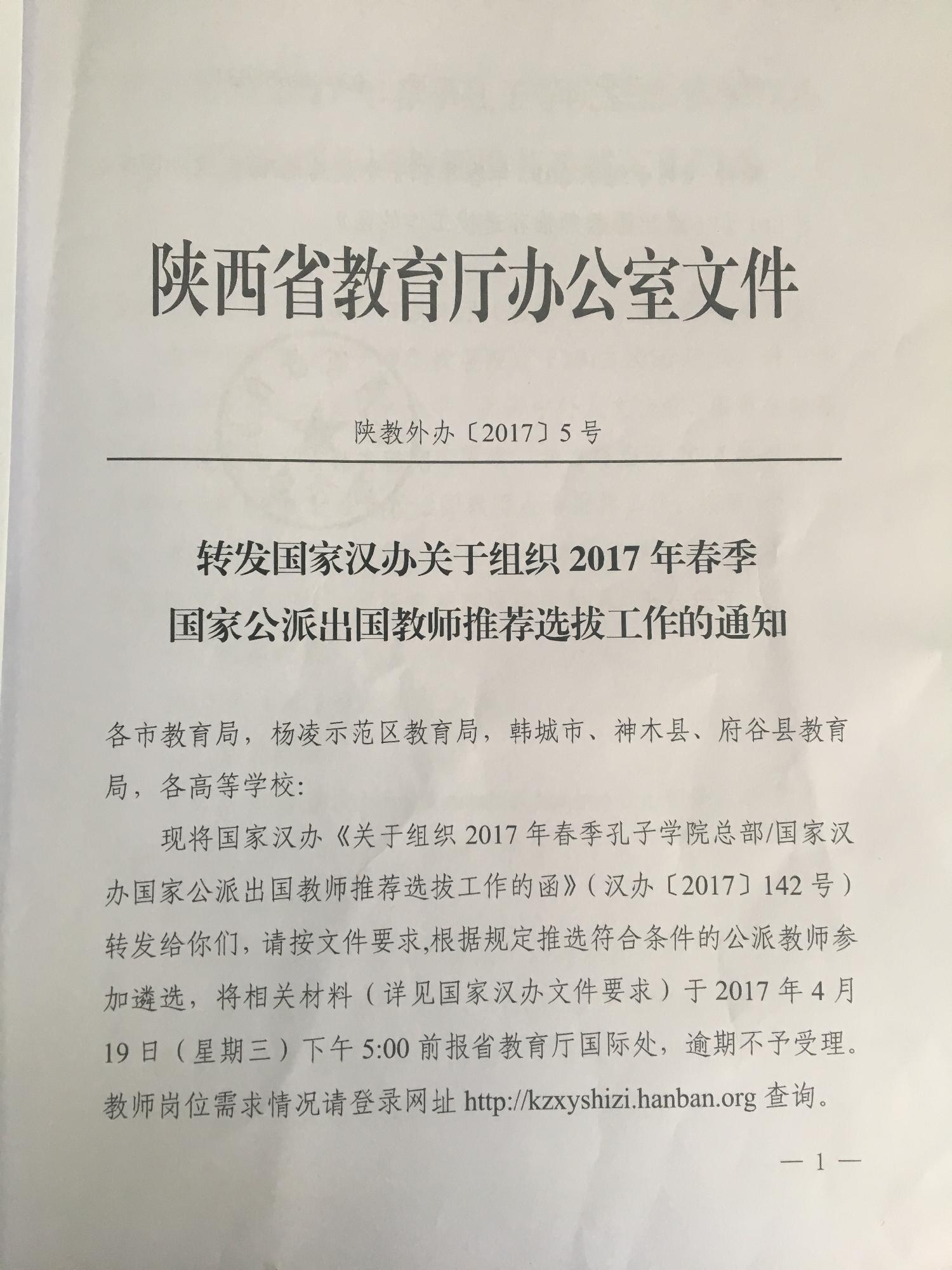 转发国家汉办关于组织2017年春季国家公派出国教师推荐选拔工作的通知