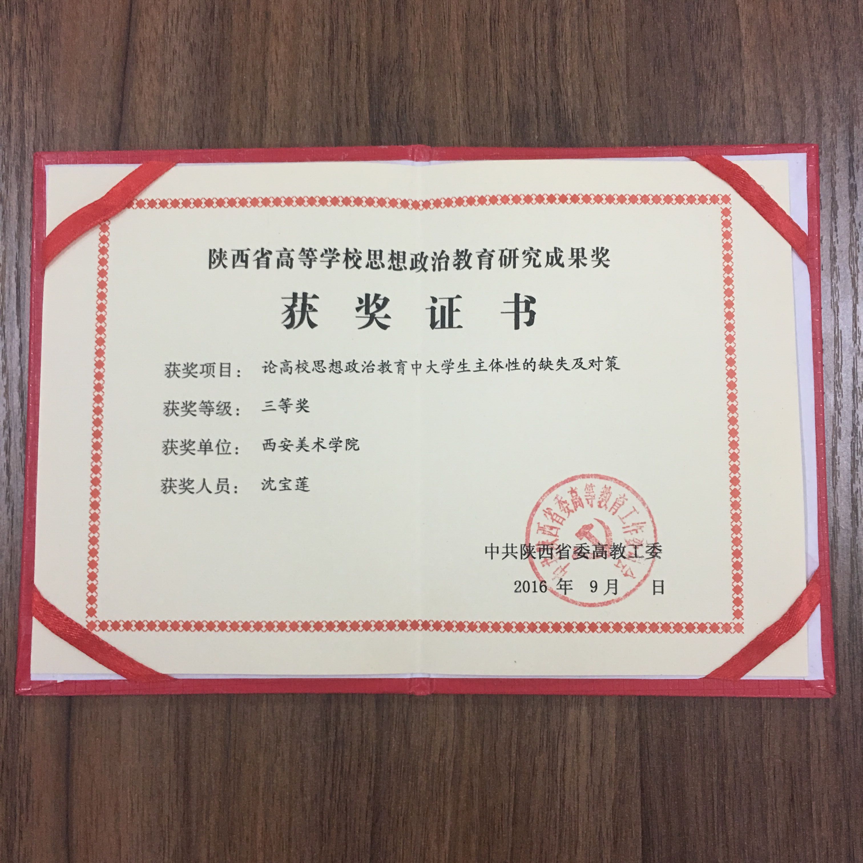 为推动我省高校思想政治教育研究工作,发现人才,表彰先进,省委高教工委委托陕西高校思想政治教育研究会组织开展了第13届陕西高校思想政治教育研究优秀论文评奖活动。在64所高校选送的301篇论文中,经专家组认真审核,产生了137篇获奖论文,我院教师沈宝莲教授的《论高校思想政治教育中大学生主体性的缺失及对策》荣获三等奖。本次获奖论文显示了两年来我省高校思想政治教育研究的方向及水平,为提高高校思想政治教育工作奠定了基础,树立了目标,对工作的开展及实践具有一定的指导作用。
