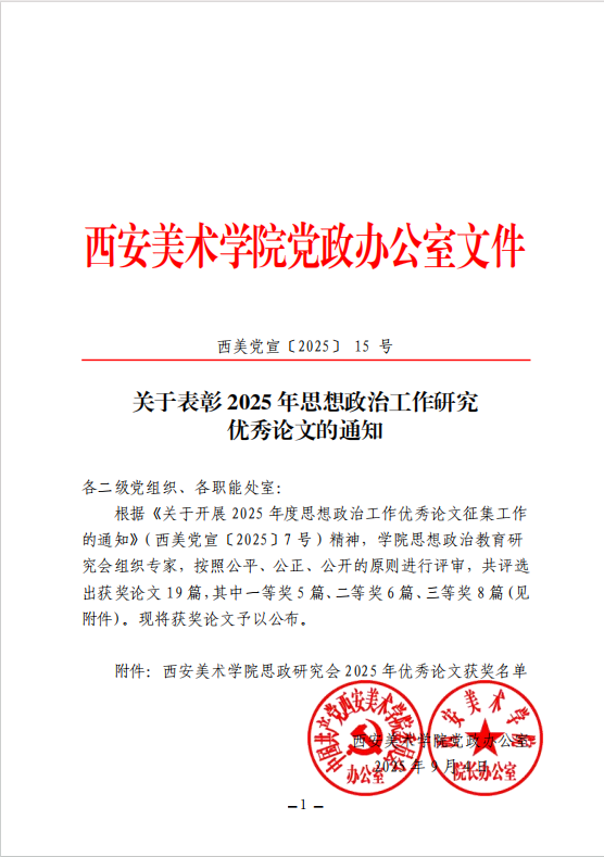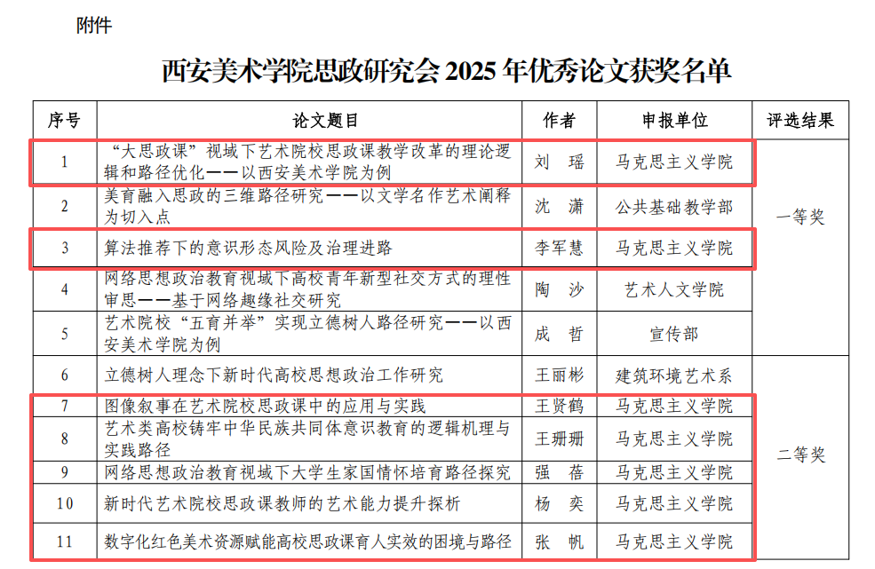 西安美术学院马克思主义学院思政研究会2025年优秀论文获奖情况