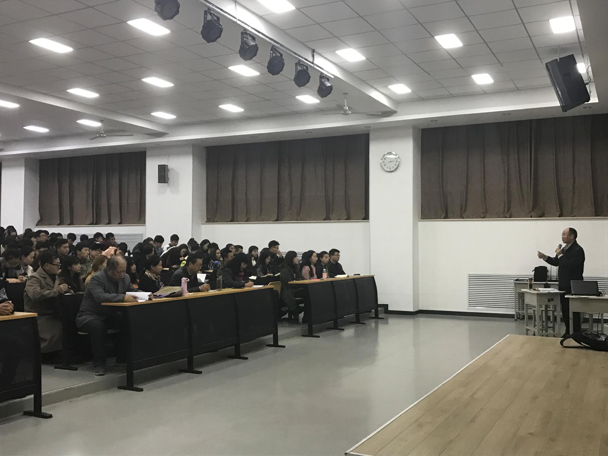 2016年11月22日下午,院党委书记王家春为2014级近300名学生上形势与政策课。王书记为学生解读习近平在全国文艺工作着座谈会上的重要讲话。王书记从文艺工作者的历史责任、艺术家的光荣使命和艺术家的艰巨任务三个方面,详细讲述自己对习近平总书记讲话的学习体会。
