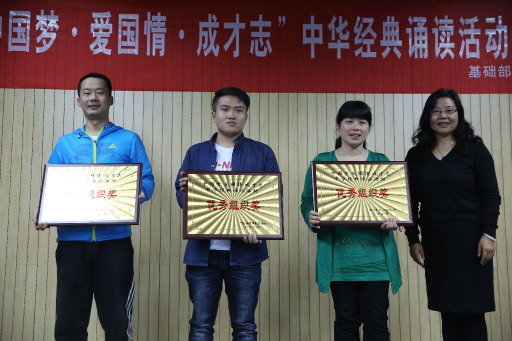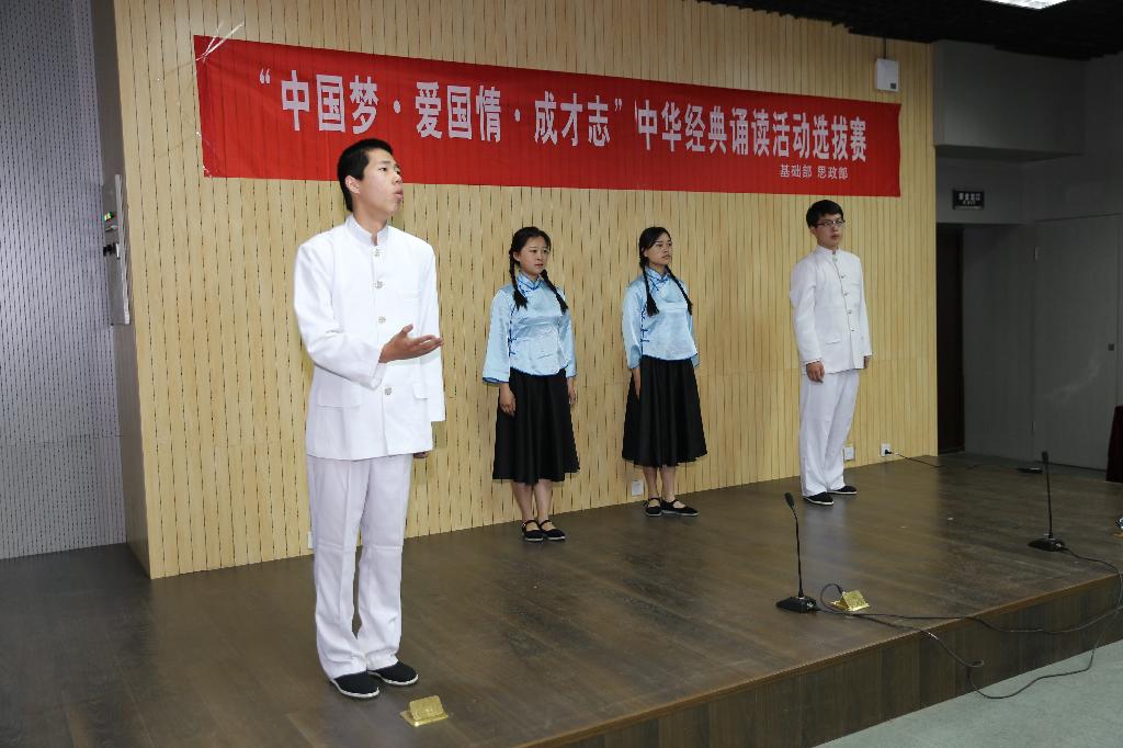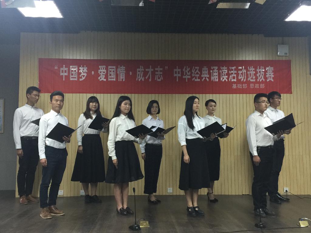 2016年4月18日,西安美术学院“中国梦· 爱国情· 成才志”经典诵读比赛隆重举行。院党委副书记赵万东、基础部主任沈宝莲、各系书记及基础部部分教师观看了比赛。本次活动由基础部、宣传部共同主办,以各系为参赛团队,内容异彩纷呈,过程紧张激烈。悠扬婉转的音乐,情感充沛的吟诵,选手们将一首首经典诗歌以多种艺术形式传递给观众,表达出热烈奔放的爱国情感,达到了文学与艺术,传承与发展的完美统一。经过激烈的角逐,公正的评判,最终艺术教育学院的《 历经风的革命雪的浩劫》赢得了评委们的一致好评,力拔头筹。工艺系的《美丽中国》、艺术教育学院的《 倾听青年》获二等奖,影视动画系的《永生的和平鸽》、环艺系的《我的祖国》及国画系的《祖国啊,我亲爱的祖国》获三等奖。
