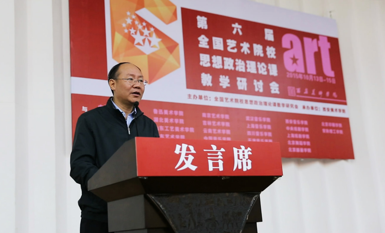 巴图在讲话中指出,思想政治理论课教学研究会从2000年成立以来,已成功举办了五届教学研讨会,本次是第六届。全国艺术院校教学研讨会成立以来,取得的成绩,说明思想政治理论课教师对自己工作的热爱、追求。在习近平总书记全国文艺工作座谈会上发表重要讲话及中共中央审议通过《关于繁荣发展社会主义文艺的意见》的背景下,研讨艺术院校思想政治理论课教学,具有重要的意义。思想政治理论课教学,要在新形势下进一步深化马克思主义中国化,处理好优秀传统文化与核心价值观的关系,进行理论创新,实现中华传统文化创造性转化和创新性发展。