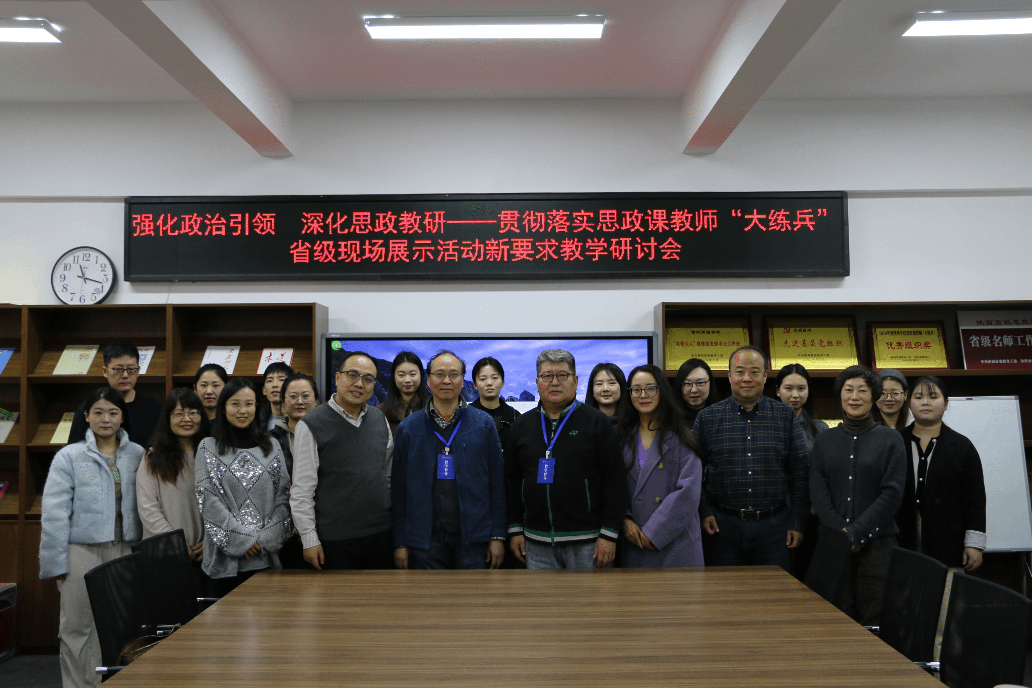 会议首先进行了集体理论学习,进一步强化党建引领方向。马克思主义学院直属党支部书记、院长韩晓剑带领全体教师重温习近平总书记对思政课建设的重要指示,深入领学《中国共产党思想政治工作条例》核心内容,夯实思政教学的政治根基。副书记黄庆莉传达学习2025年度陕西高校思政课教师“大练兵”省级现场展示活动要求,明确“大练兵”活动的政治要求与工作重点,确保备战工作始终紧跟党建引领步伐。