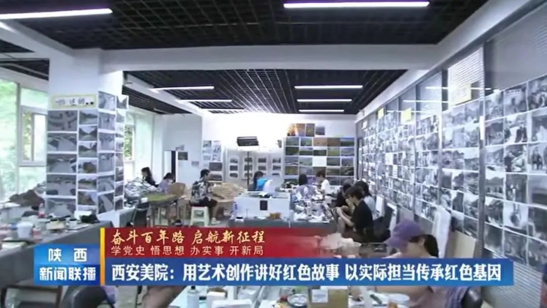 近日,陕西新闻联播报道陕西大中小学在新时代新征程上,用高水平“大思政课”立德树人,开创新时代思政教育新局面。近年来,西安美术学院在习近平新时代中国特色社会主义思想的指引下,牢牢把握立德树人根本任务,坚持思政课建设与党的理论武装同步推进,不断加强顶层设计,以社会主义先进文化为力量根基,将大思政课建设与专业特色相结合,探索“思政+美术”新模式,推动思政教育与艺术创作同向发力,不断提升思政课的针对性和吸引力。