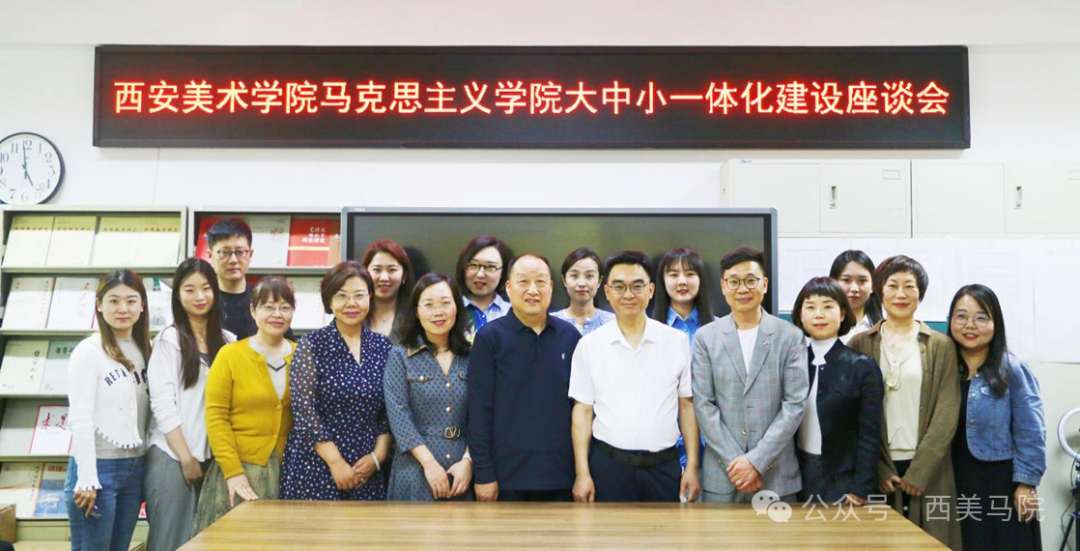 此次大中小思政课一体化建设座谈会特别邀请了西安高新一中初级中学教研室主任张宏亮、艺术教育中心主任房艳妮,西安高新第三小学副校长张婕和西安高新第二十八小学陕西省特级教师张敏仓。西安美术学院党委副书记邱必震、马克思主义学院院长沈宝莲以及马院部分教师参加座谈会。会议由马克思主义学院院长沈宝莲主持。